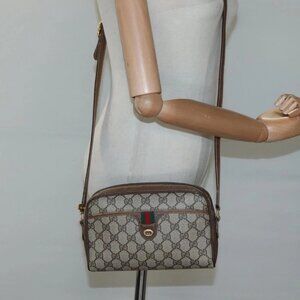 GUCCI GG Supreme Web Sherry Line Bag PVC Beige Gold