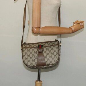 GUCCI GG Supreme Web Sherry Line Bag PVC Beige Gold