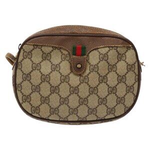 GUCCI GG Supreme Web Sherry Line Bag PVC Beige Gold