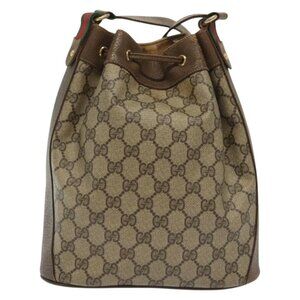 GUCCI GG Supreme Web Sherry Line Bag PVC Beige Gold 72 02 034 Auth 140637