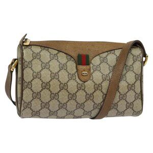 GUCCI GG Supreme Web Sherry Line Bag PVC Beige Gold 89 02 018 Auth 131720