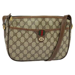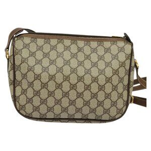 GUCCI GG Supreme Web Sherry Line Bag PVC Beige Gold 89 02 077 Auth 128012
