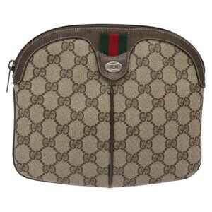 GUCCI GG Supreme Web Sherry Line Bag PVC Beige Gold 904 02 047 Auth