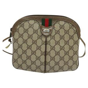 GUCCI GG Supreme Web Sherry Line Bag PVC Beige Green Red 904 02 047 Auth EC913