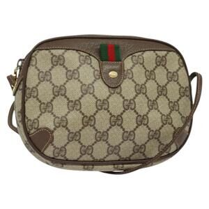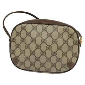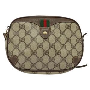 GUCCI GG Supreme Web Sherry Line Bag Pvc Beige Gold 156 02 066
