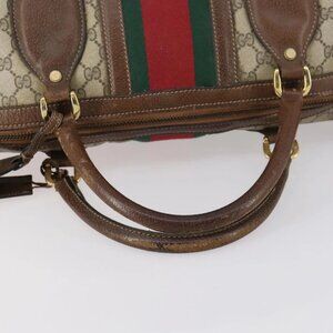 GUCCI GG Supreme Web Sherry Line Boston Bag PVC Beige Gold