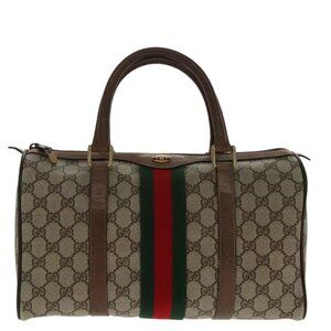 GUCCI GG Supreme Web Sherry Line Boston Bag PVC Beige Gold Auth 96271