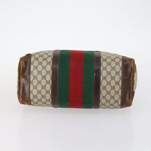GUCCI GG Supreme Web Sherry Line Boston Bag PVC Beige Gold Red Auth hk3095