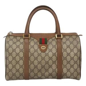 GUCCI GG Supreme Web Sherry Line Boston Bag Pvc Beige Gold 40 02 007