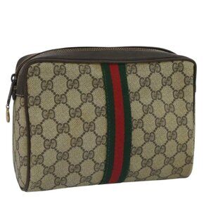 GUCCI GG Supreme Web Sherry Line Clutch Bag PVC Beige 32 014 3553 Auth 109848