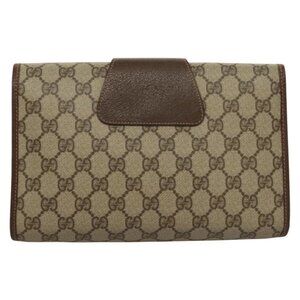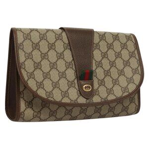 GUCCI GG Supreme Web Sherry Line Clutch Bag PVC Beige