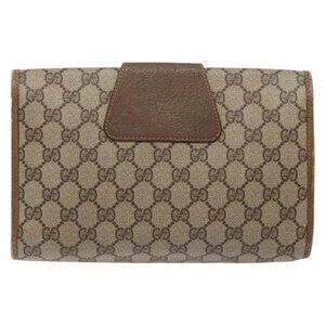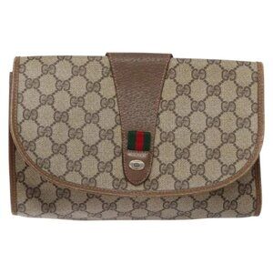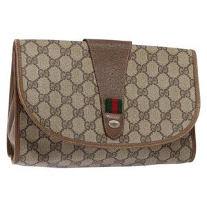 GUCCI GG Supreme Web Sherry Line Clutch Bag PVC Beige Gold