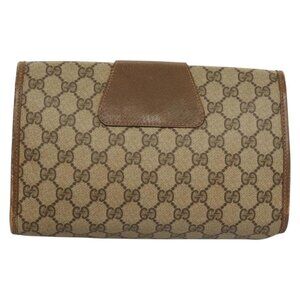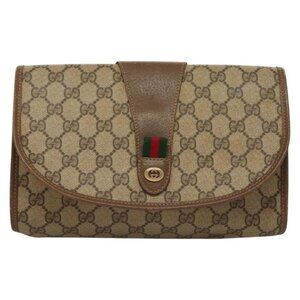 GUCCI GG Supreme Web Sherry Line Clutch Bag PVC Beige Gold 89 01 030 Auth 133336