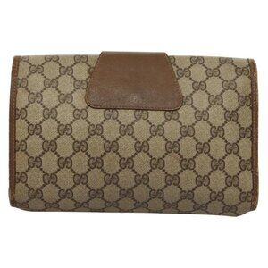 GUCCI GG Supreme Web Sherry Line Clutch Bag PVC Beige Gold 89 01 030 Auth BA4284