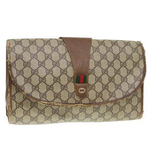 GUCCI GG Supreme Web Sherry Line Clutch Bag PVC Beige Red