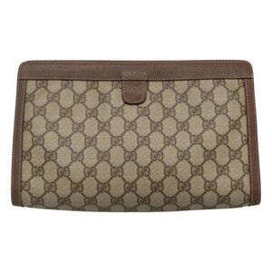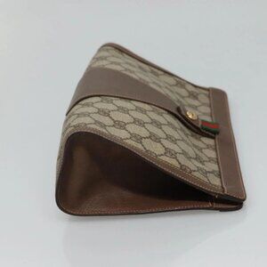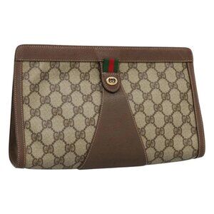 GUCCI GG Supreme Web Sherry Line Clutch Bag PVC Beige Red