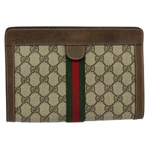 GUCCI GG Supreme Web Sherry Line Clutch Bag PVC Beige Red 89 01 001 Auth th5661