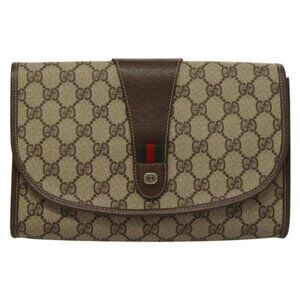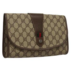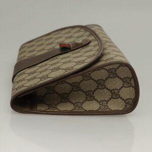 GUCCI GG Supreme Web Sherry Line Clutch Bag PVC Beige Red Green Auth 132258