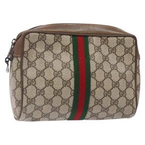 GUCCI GG Supreme Web Sherry Line Clutch Bag PVC Red Gold