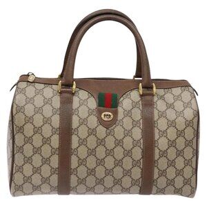 GUCCI GG Supreme Web Sherry Line Hand Bag PVC Beige Gold 40 02 007 Auth BA4667