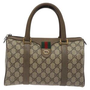 GUCCI GG Supreme Web Sherry Line Hand Bag PVC Beige Gold