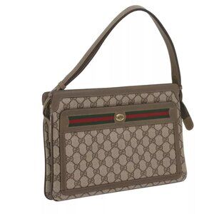 GUCCI GG Supreme Web Sherry Line Shoulder Bag Beige Red