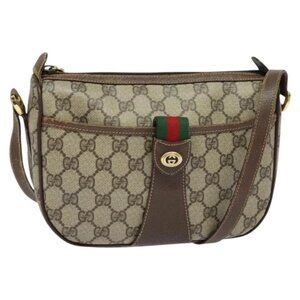 GUCCI GG Supreme Web Sherry Line Shoulder Bag PVC Beige 39 02 032 Auth ki5847