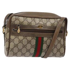 GUCCI GG Supreme Web Sherry Line Shoulder Bag PVC Beige 68 02 004 Auth 134064