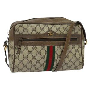 GUCCI GG Supreme Web Sherry Line Shoulder Bag PVC Beige