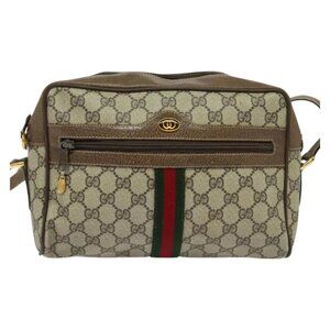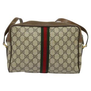 GUCCI GG Supreme Web Sherry Line Shoulder Bag PVC Beige