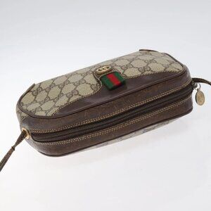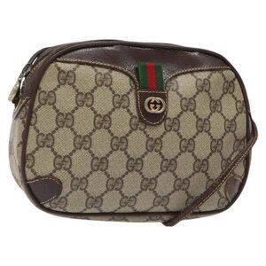 GUCCI GG Supreme Web Sherry Line Shoulder Bag PVC Beige