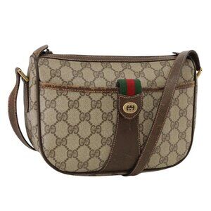 GUCCI GG Supreme Web Sherry Line Shoulder Bag PVC Beige