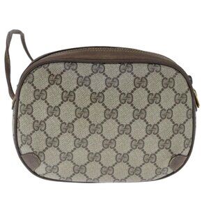 GUCCI GG Supreme Web Sherry Line Shoulder Bag PVC Beige