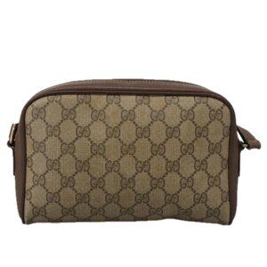 GUCCI GG Supreme Web Sherry Line Shoulder Bag PVC Beige