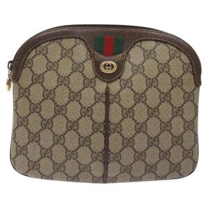 GUCCI GG Supreme Web Sherry Line Shoulder Bag PVC Beige 904 02 047 Auth 130857