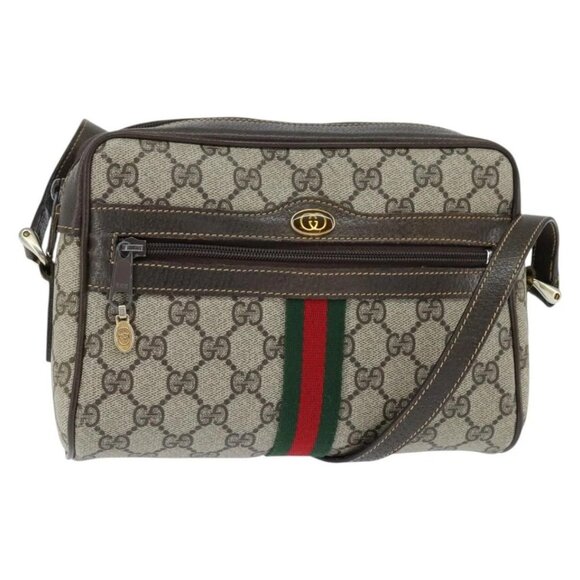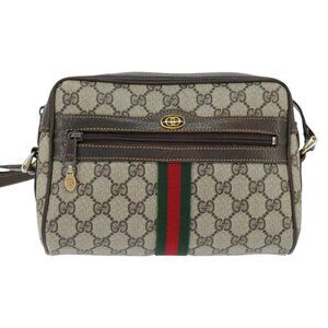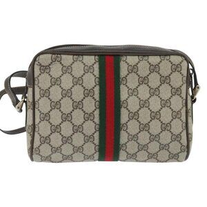 GUCCI GG Supreme Web Sherry Line Shoulder Bag PVC Beige Gold 010 378 Auth 147769