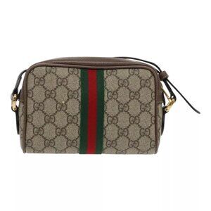 GUCCI GG Supreme Web Sherry Line Shoulder Bag PVC Beige Gold 517350 Auth tb1248