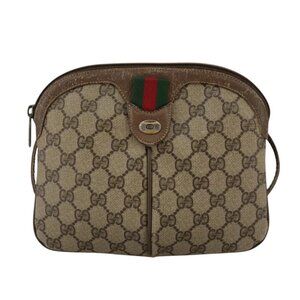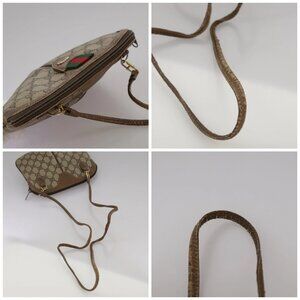 GUCCI GG Supreme Web Sherry Line Shoulder Bag PVC Beige Gold Auth 110668