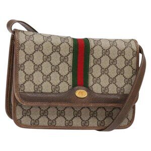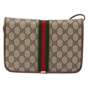 GUCCI GG Supreme Web Sherry Line Shoulder Bag PVC Beige Gold Auth 130754