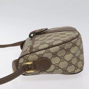 GUCCI GG Supreme Web Sherry Line Shoulder Bag PVC Beige Gold Auth 131426