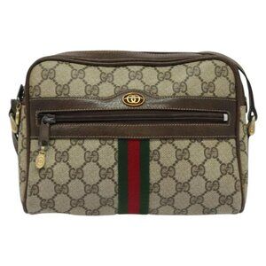 GUCCI GG Supreme Web Sherry Line Shoulder Bag PVC Beige Gold Auth 137441