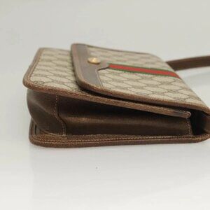 GUCCI GG Supreme Web Sherry Line Shoulder Bag PVC Beige Gold Auth BA3785