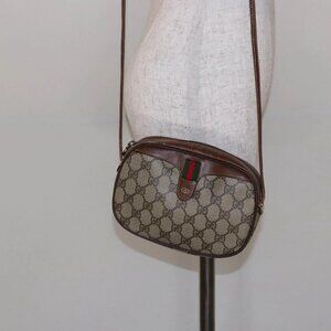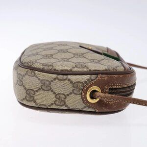 GUCCI GG Supreme Web Sherry Line Shoulder Bag PVC Beige Gold Auth BA4929