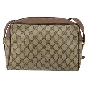 GUCCI GG Supreme Web Sherry Line Shoulder Bag PVC Beige Gold Red Auth bs29489