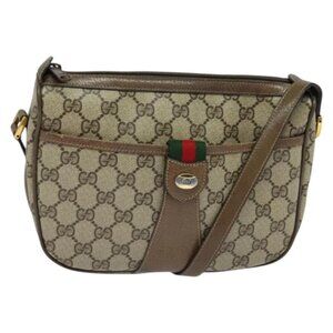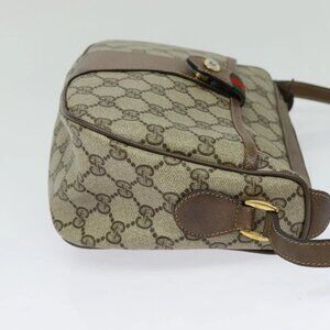 GUCCI GG Supreme Web Sherry Line Shoulder Bag PVC Beige Gold Red Auth ep9570