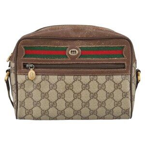 GUCCI GG Supreme Web Sherry Line Shoulder Bag PVC Beige Green Red