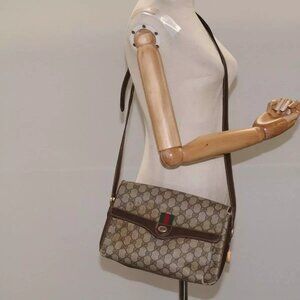 GUCCI GG Supreme Web Sherry Line Shoulder Bag PVC Beige Red Green Auth 104484