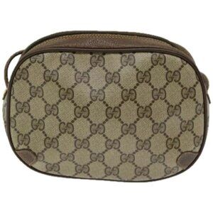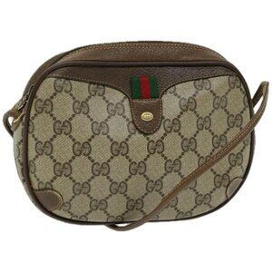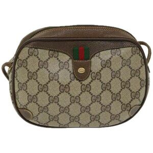 GUCCI GG Supreme Web Sherry Line Shoulder Bag PVC Beige authentic