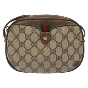 GUCCI GG Supreme Web Sherry Line Shoulder Bag Pvc Beige Red Green