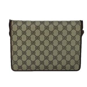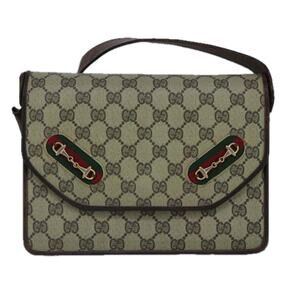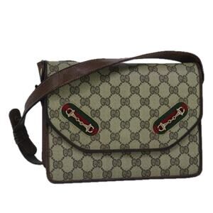 GUCCI GG Supreme Web Sherry Line Shoulder Bag Pvc Leather Beige Gold